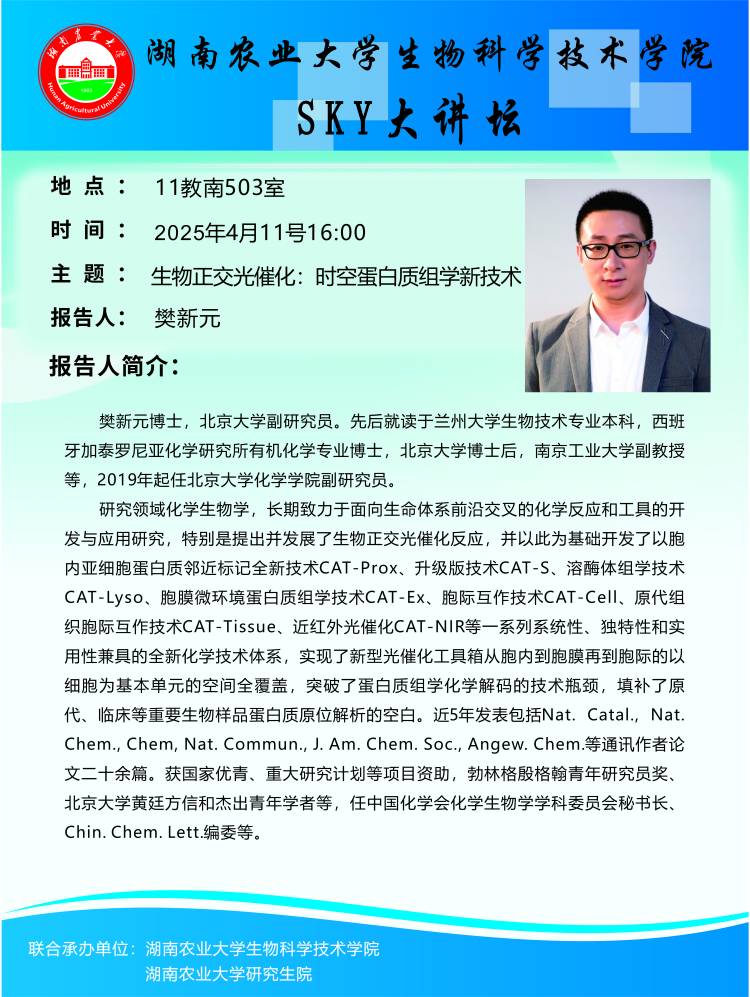 SKY大讲坛—生物正交光催化:时空蛋白质组学新技术